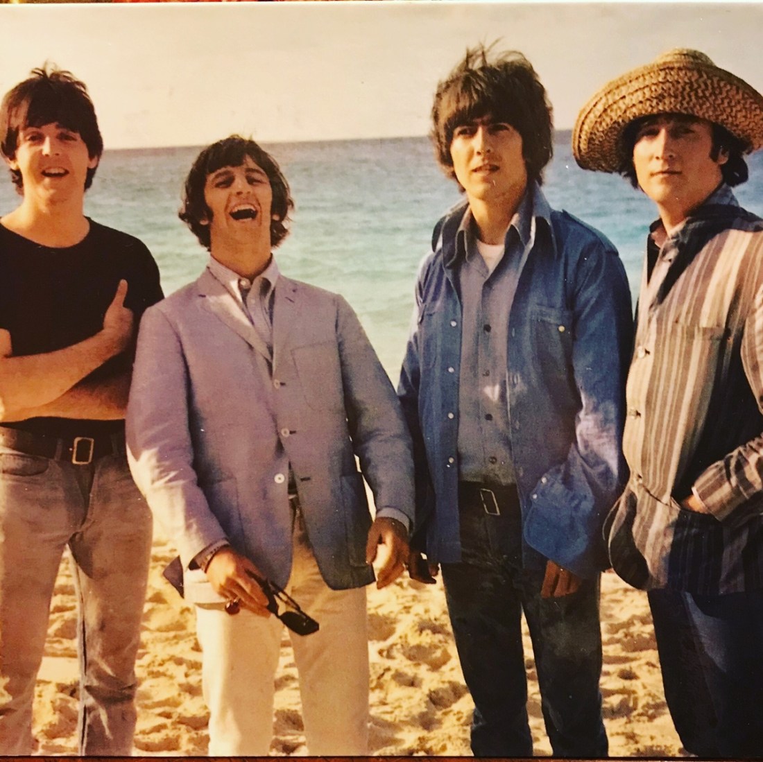 Just four lads standing on the sands of the British shoreline.