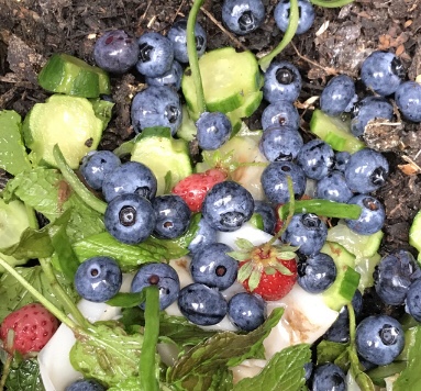 Sometimes my spa water ingredients, having imparted their essence for three days running, still have a glow about them when their intended purpose has passed. The leftover water they’ve splashed about in, freely frolicking while adding color and health giving benefits is to be used on the potted kumquat tree in my garden.