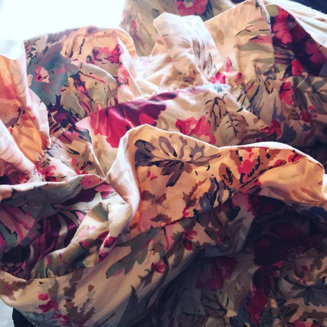 But no. It contained a beautifully patterned Ralph Lauren comforter set that had been gifted to me by the bestest shopper I know. Contained in a dusty old trash bag out in the garage. Filling no purpose just (follow me now) existing in a dark space. Contained. In the dark. Unused and unappreciated.