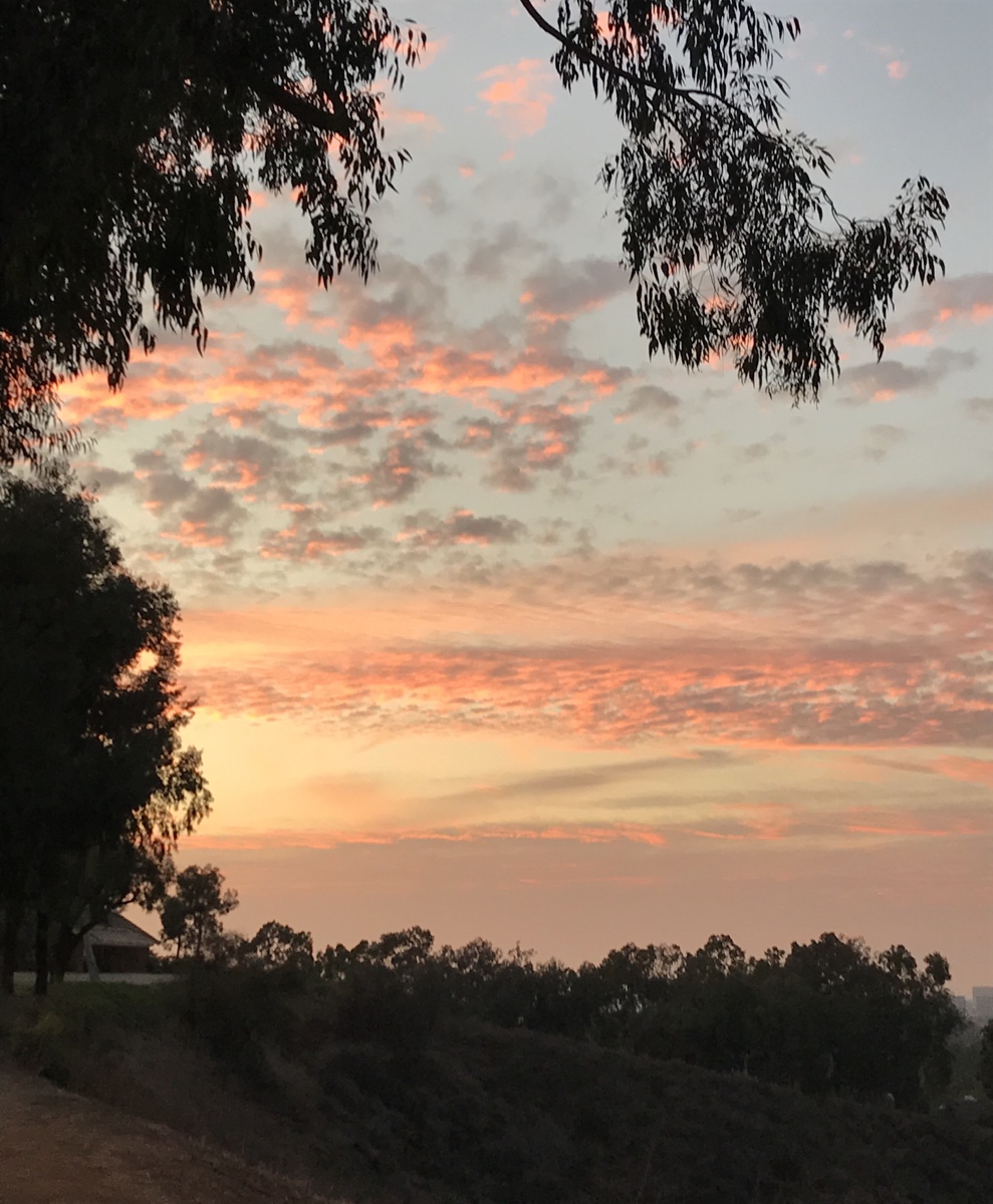 Sure, there were errandy things I needed to dash off to. Because there’s no greater rush than to find the right microwave oven replacement bulb at long last or perhaps to change out the water filter on the fridge (my current to-do list). But I said to myself, “that can wait” while I paused and I pondered my day. While I drank in this expanse of beauty; this artist’s palette in the sky. The freeway rush hour will still be there—it will wait while this calming scene at the end of my day takes me somewhere much further than the Southbound 405 will tonight.