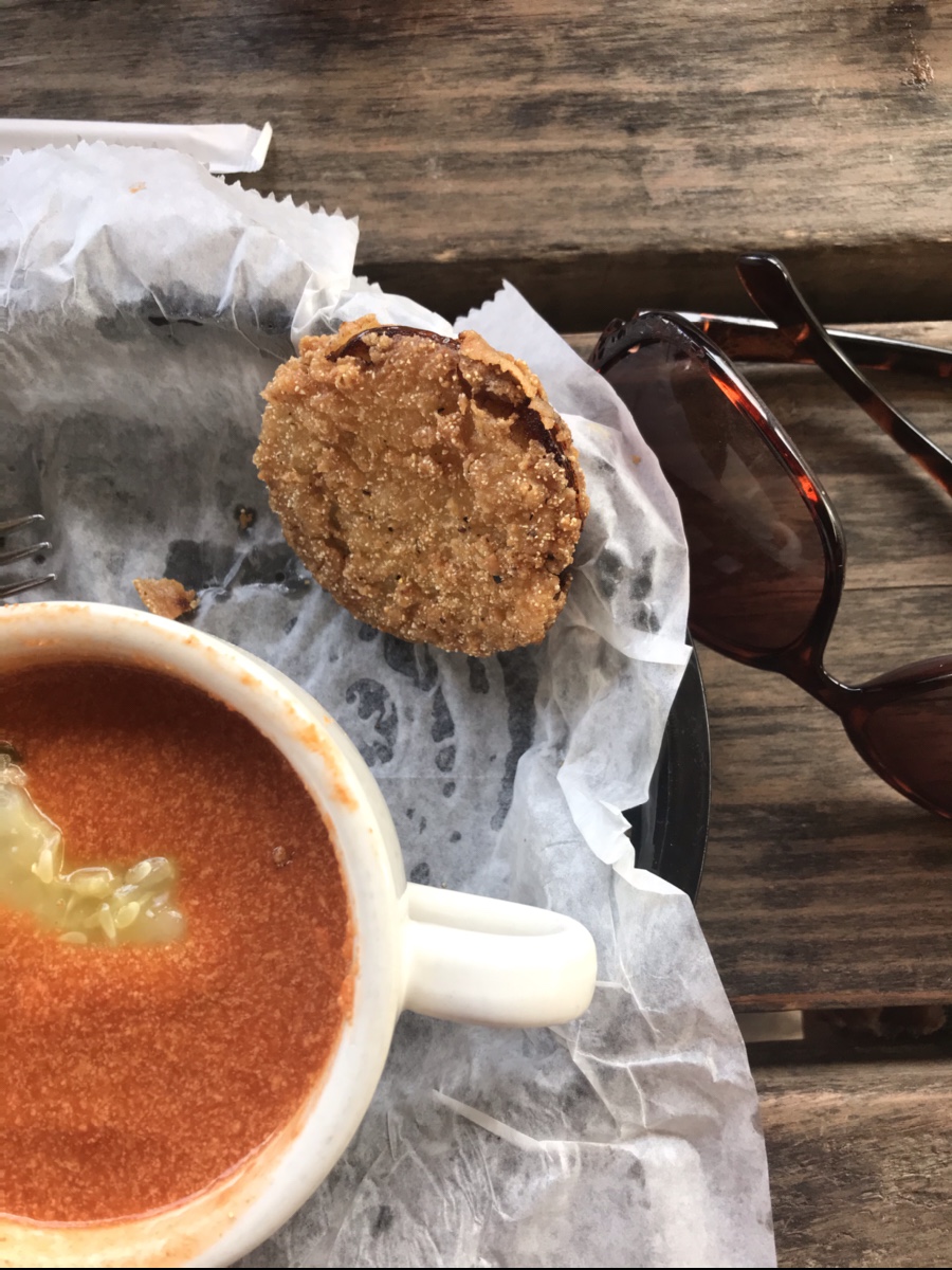 We drove over to Palestine to eat some local BBQ at a down-home Texas place called the Pint and Draft House. The fried green tomatoes, I tell you, did not disappoint. A distinctive smokehouse aroma wafted by now and again and a black cat selectively chose who’s patio table she’d curl up under next. And the people. The people around here are so friendly and no one, I mean NO ONE, resorts to the SoCal go-to of “have a nice day.” Unless they throw “y’all” onto the end of it that is.
