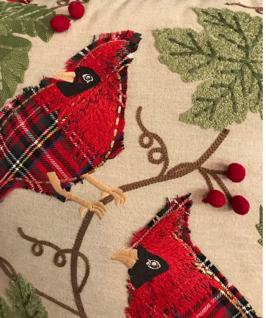 This decorative pillow, though not dripping in diamonds and pearls, includes the following details: plaid piping, appliqué work, embroidery, crewel work, gold metallic thread accents, flame stitching, and hand applied mini pom-poms. Oh, and did I mention? It has a hidden zipper so you can freely access the contents.