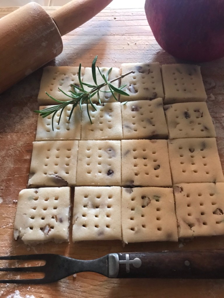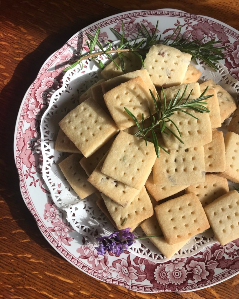 But a striking difference between two of my photos got me thinking before I’ve even finished my morning coffee. In addition to the usual butter, sugar, and flour in my basic recipe, this batch included freshly picked garden rosemary and tiny bits of pecan. Melt in your mouth goodness 2.0. Just a suggestion of savoy with a smidge of nutty crunch. Elevation in one bite.