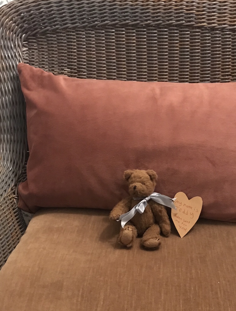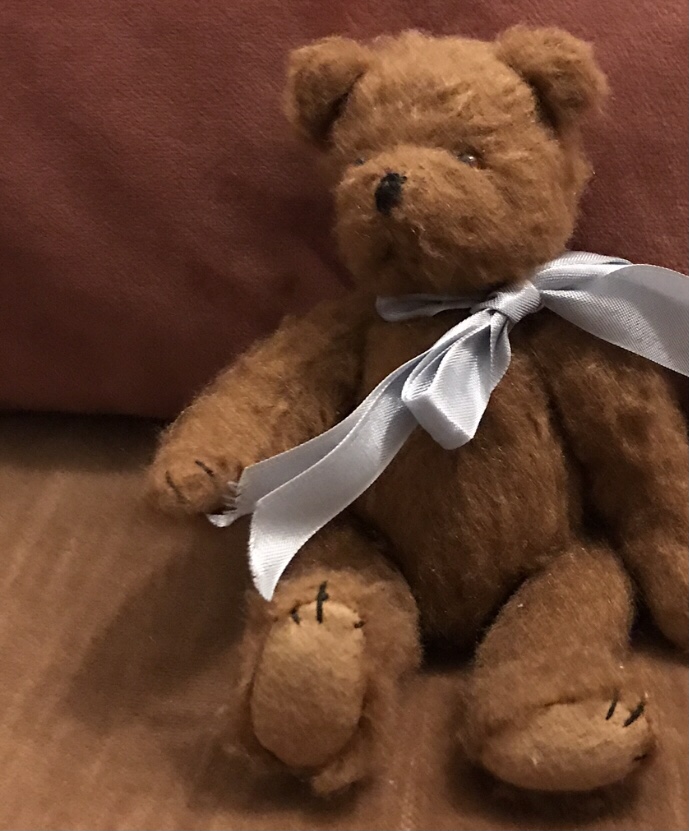 A diminutive Teddy such as mine, or a Teddy of any size for that matter, may embody the love that we cannot express now that we’re in adulthood or maybe a love that we’ve lost. From a childhood of dreams or the lack of one, a much loved teddy silently grants permission for the heart to hold on to a person or place in time. A place of love and acceptance or deep need for it. Oh so much more than stitched together bits of fur, stuffing of excelsior or cotton batting, button eyes and a satin bow.